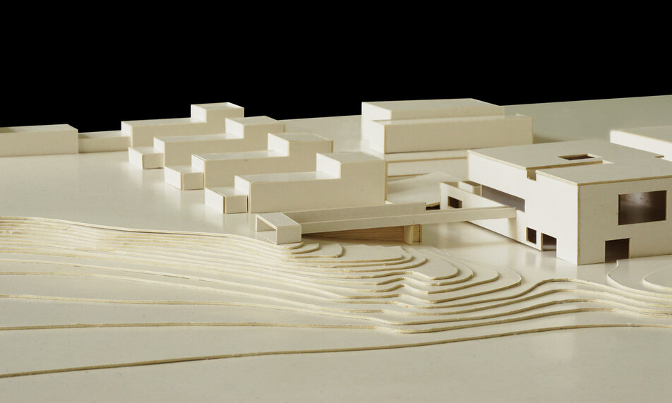 des Büros „Haber Turri Architekten“ vor, das 2018 den Wettbewerb für den Erweiterungsbau gewann. „Die Geometrie des Kopfbaus und die brückenartige Bauweise nehmen symbolischen Bezug zu den geplanten, nie realisierten Bauten der ursprünglichen Planungen“, heißt es in den Erläuterungen der Architekten. [...]
