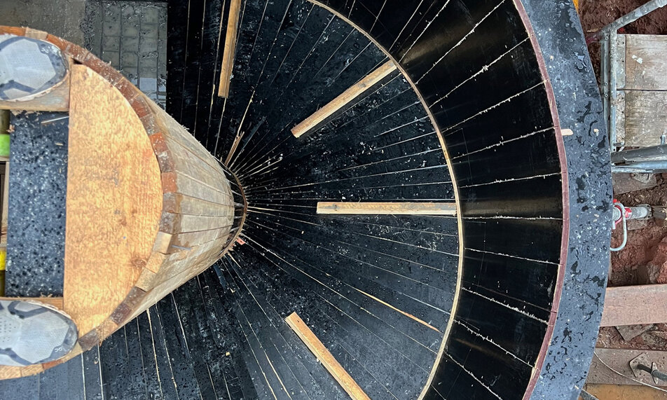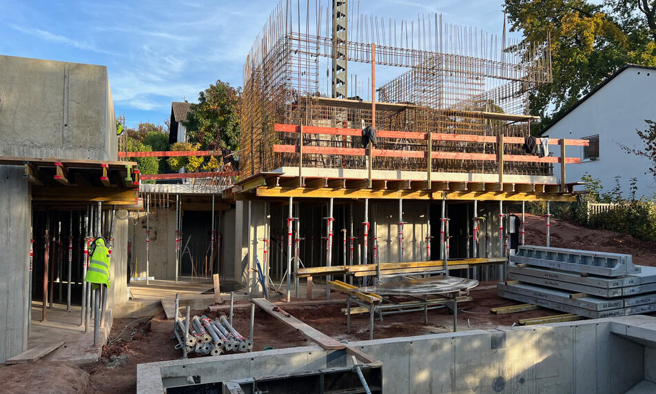 Bauarbeiten schreiten voranDie Bauarbeiten der Villa R in Gundernhausen schreiten mit der Betonierung der runden Sichtbetontreppe voran.