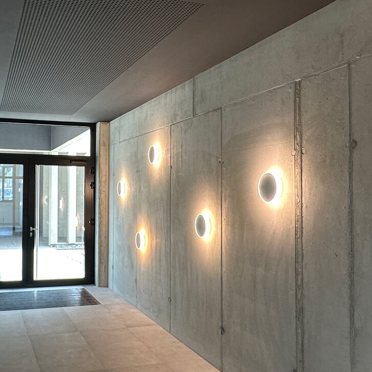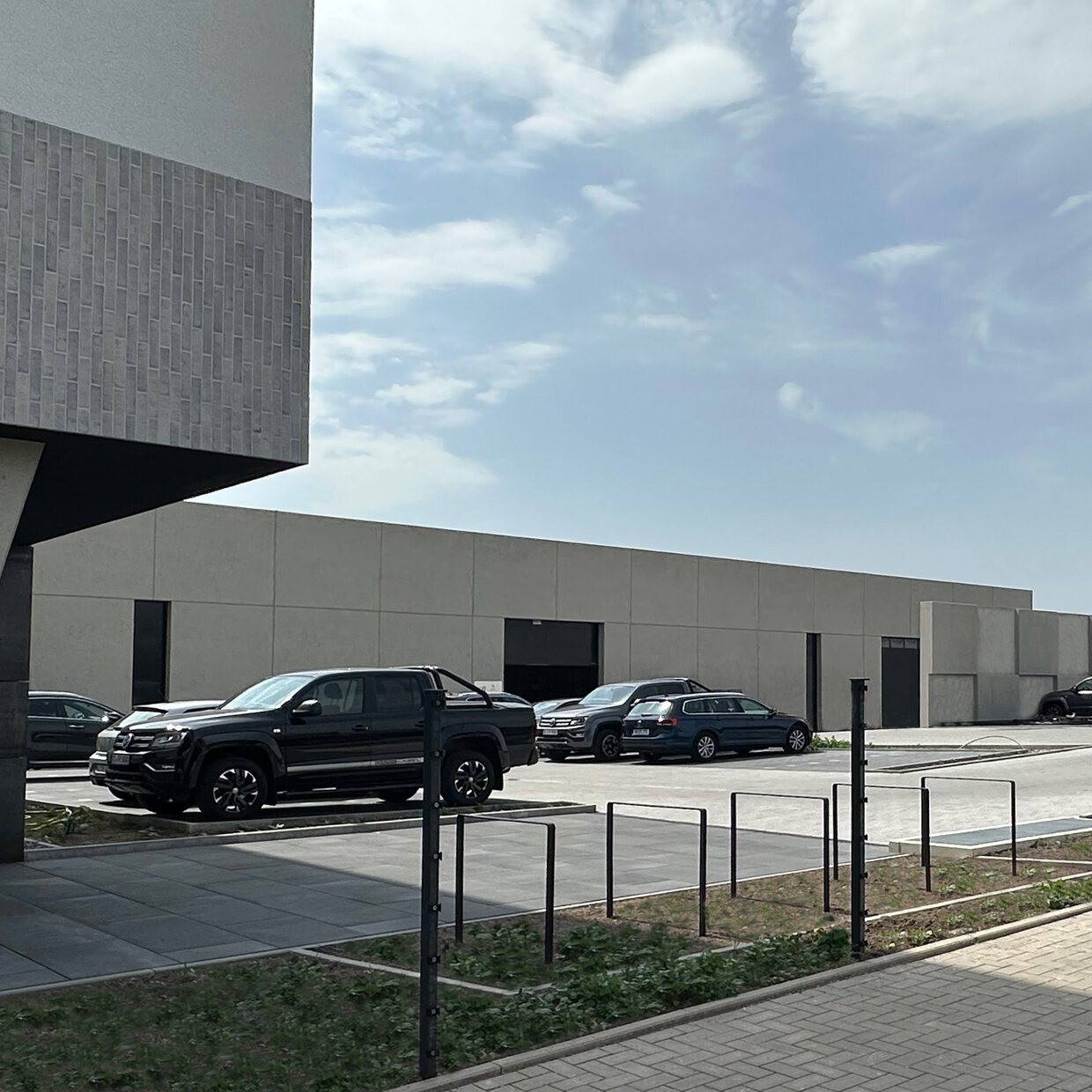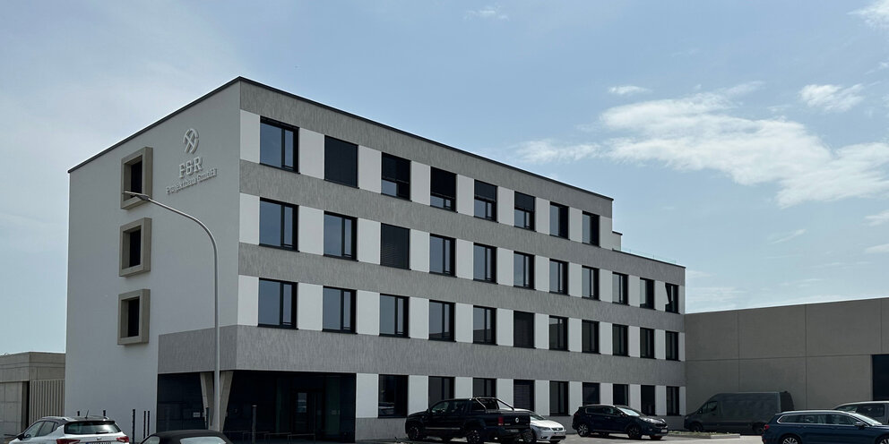 Das für ein Bauunternehmen sowie einen Projektentwickler und Bauträger konzipierte Projekt umfasst ein viergeschossiges Bürogebäude mit Betriebswohnung, eine flexibel aufteilbare Lagerhalle mit über 90m Länge sowie ein multifunktional nutzbares Nebengebäude. In heterogener Umgebung eines typischen Gewerbegebiets wird mit der gewählten Gliederung und Anordnung der Baumasse eine städtebaulich klare Struktur gebildet. Zugleich werden qualitätvolle Räume geschaffen und optimale betriebliche Abläufe gewährleistet.