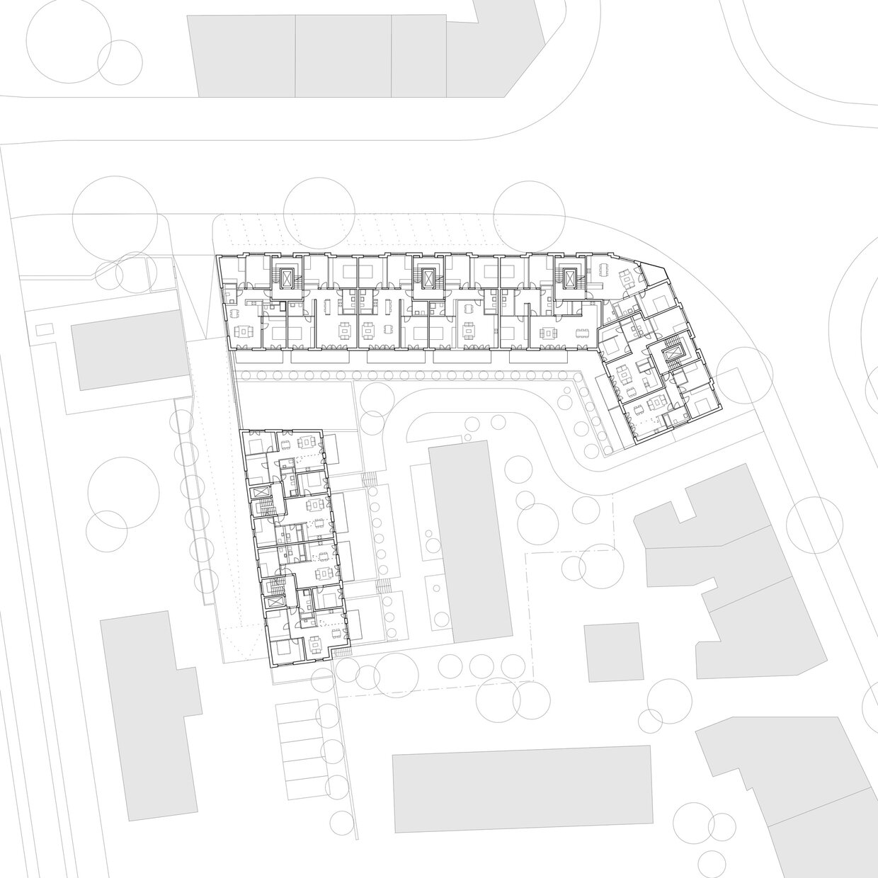 Mit präziser Fassung vormals diffuser Raumkanten gelingt die räumliche Neuordnung und Nachverdichtung eines in Teilen bislang zu Bahnbetriebszwecken genutzten Areals in Frankfurt-Sachsenhausen. Die neue Anlage am südlichen Ende der Schweizer Straße umfasst zwei in den urbanen Kontext eingefügte Baukörper sowie ein gründerzeitliches Bestandsgebäude, das revitalisiert wird. Alle 65 Wohneinheiten des in einem optimierten Energiestandard - KfW Energie-Effizienzhaus 70 - konzipierten Ensembles öffnen sich mit Hochgärten, Balkonen oder Dachterrassen großzügig zum verkehrsfreien begrünten Innenhof. Vor dem Hintergrund städtebaulich, planungsrechtlich und baukonstruktiv schwieriger Rahmenbedingungen, stellt Maison Suisse eine gelungene Stadtreparatur dar.