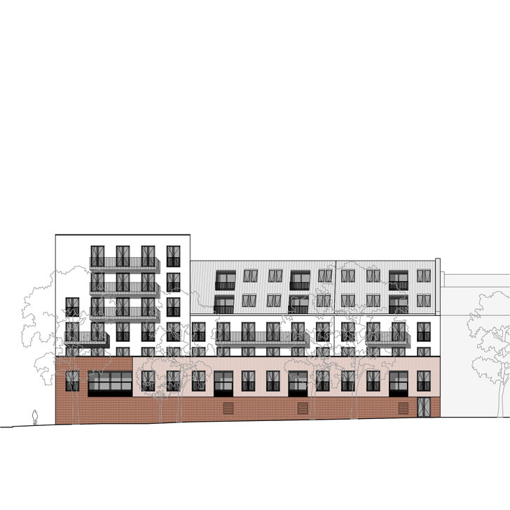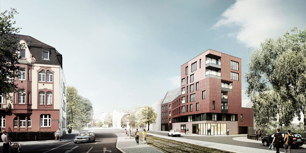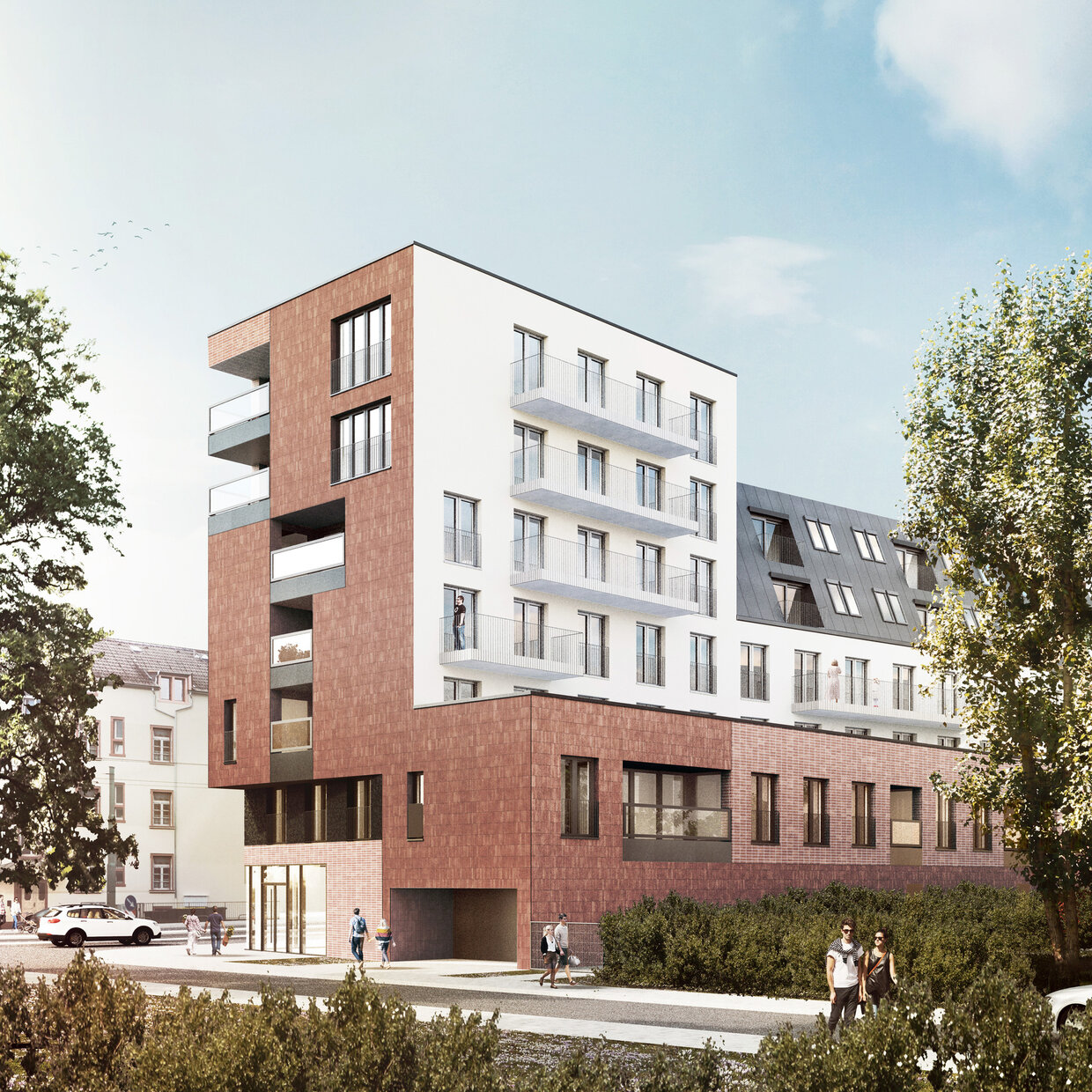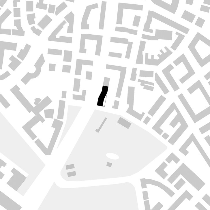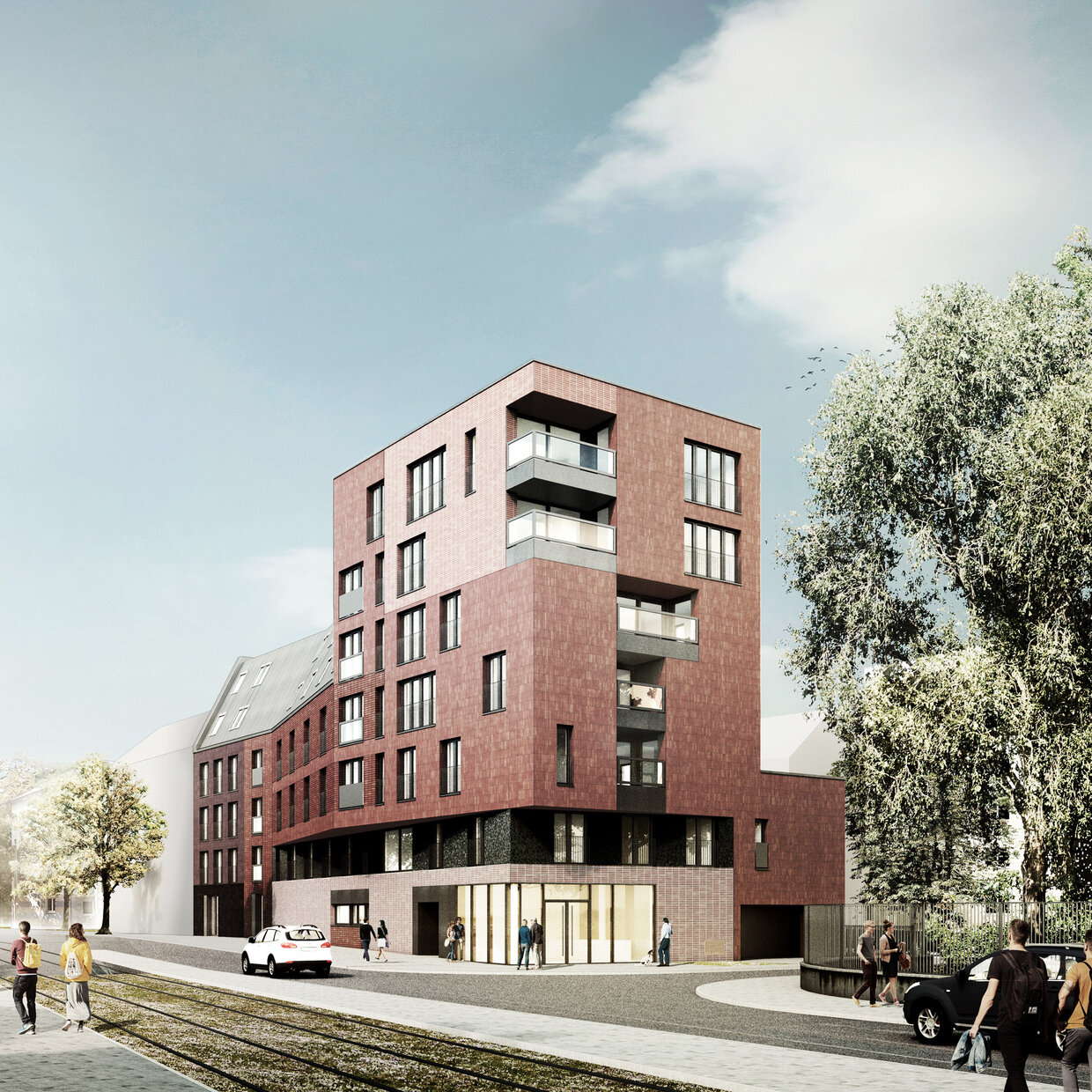 Das untypisch schmale Grundstück ist historisch entstanden, als die Friedberger Landstraße von ihrer ursprünglichen Lage an der heutigen Mercatorstraße nach Osten verschoben und durch die existierende Blockrandbebauung geführt wurde. Das Projekt beabsichtigt die Vervollständigung der straßenbegleitenden Bebauung sowie die Aufwertung der städtebaulichen Torsituation zum Nordend durch eine volumetrische Eckbetonung, die von der Wallanlage her sichtbar ist. Die Fassadengestaltung beabsichtigt eine bewusste Interpretation vorgefundener Motiven und Materialien der Friedberger Landstraße.